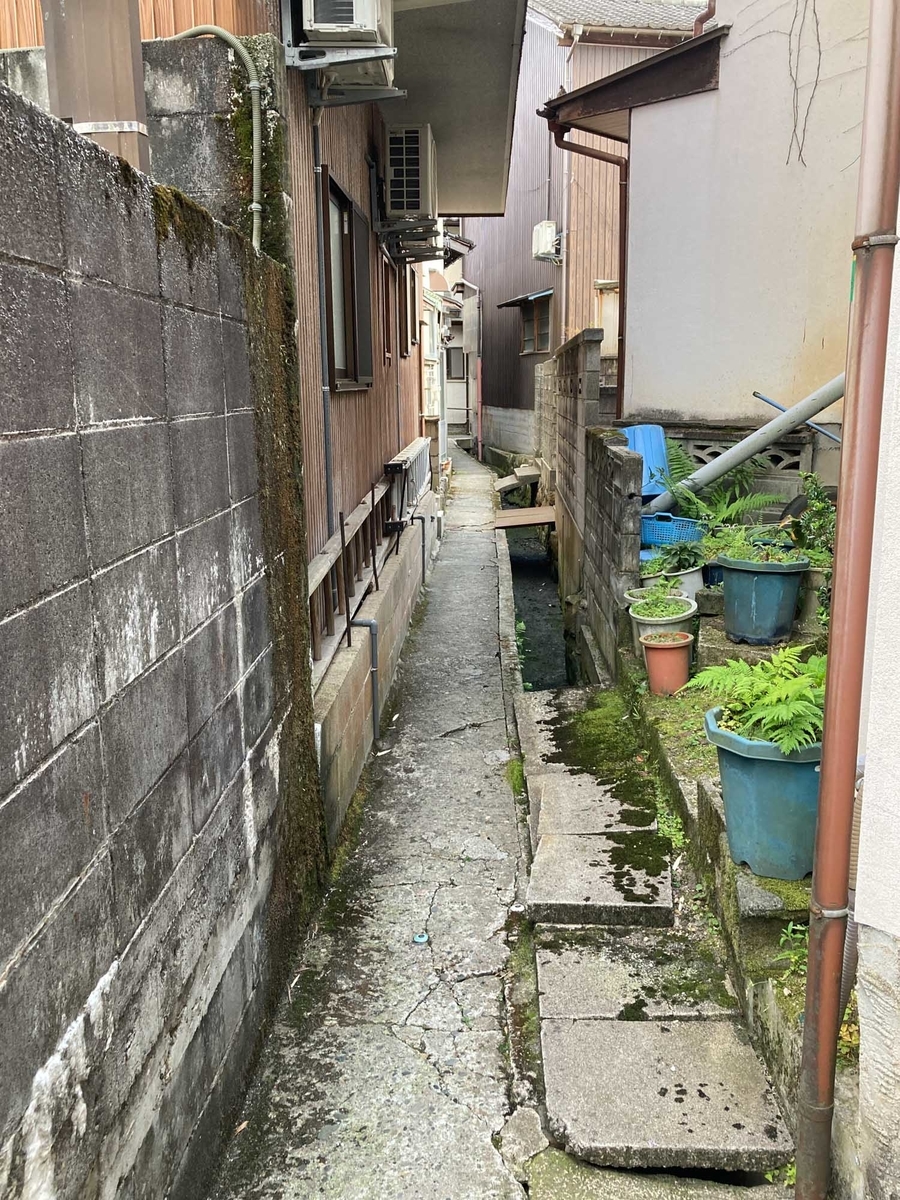 駐車場にバイク停めれるのかしら、みたいなことも心配してたのだけど、予約時に申告しておいたら、ちゃんと屋根ありのスペースを確保してくださっており、しかも駐車場から宿までの「近道」がこんな道で既に興奮