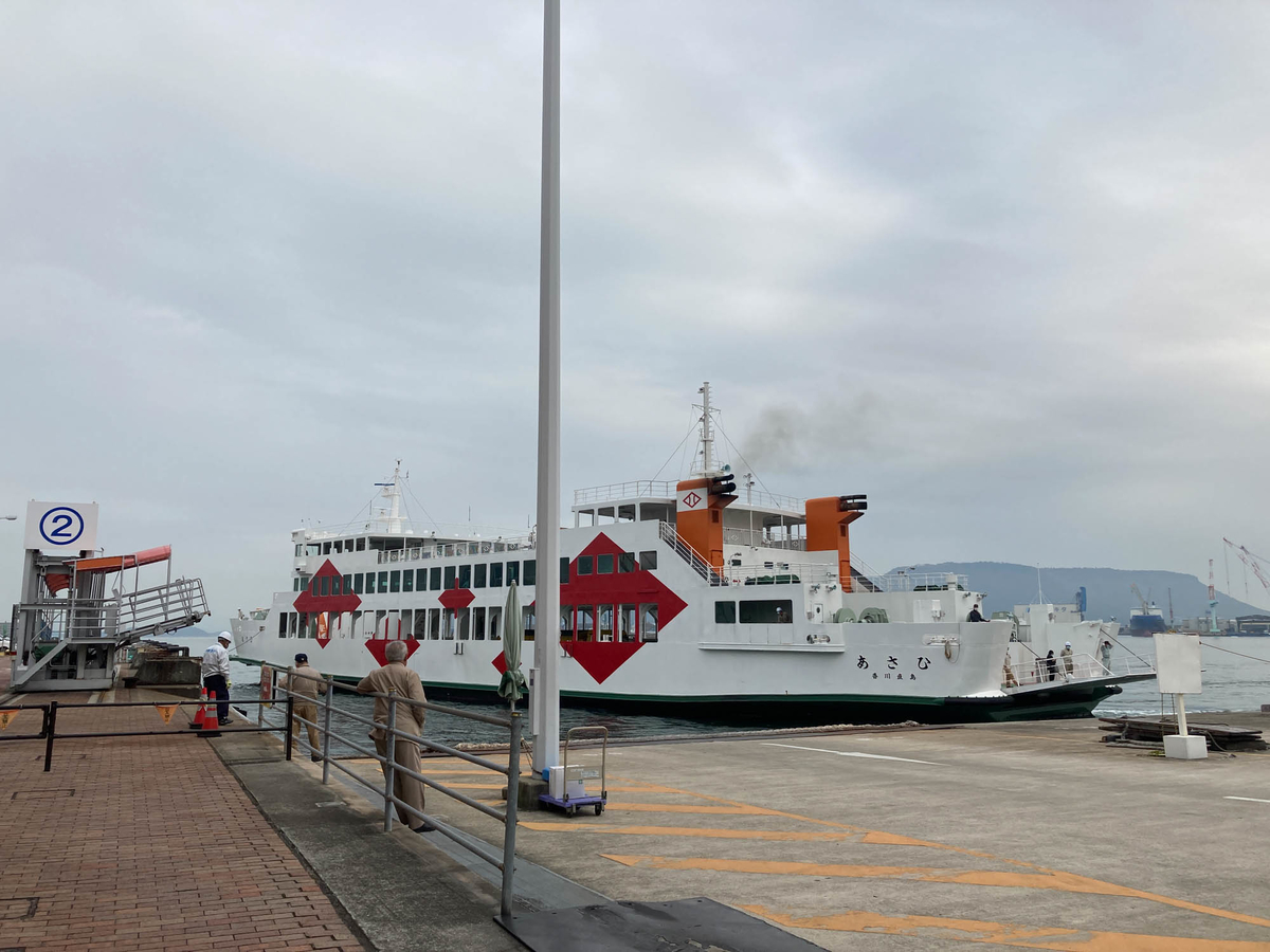 高松から本州へカブで渡るには、瀬戸大橋は通れないので船を使うしかなく、宇野への直行便はなくなってしまったので直島でいったん乗り換える必要がある。2時間弱ぐらい半端な時間が直島でできたので大急ぎでおしゃれカフェに駆け込んだりしていた。