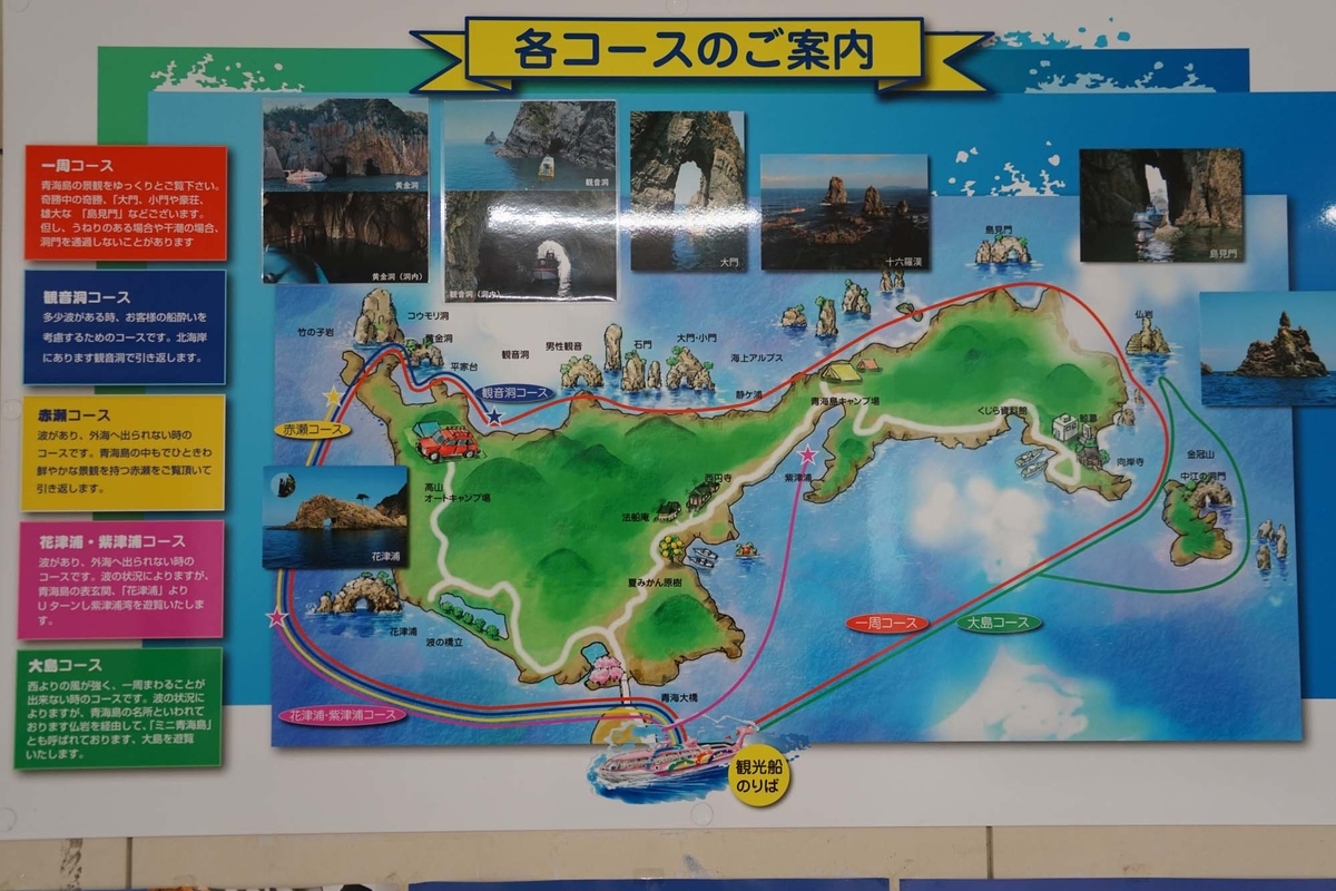 青海島観光汽船のクルーズ船に乗る。
