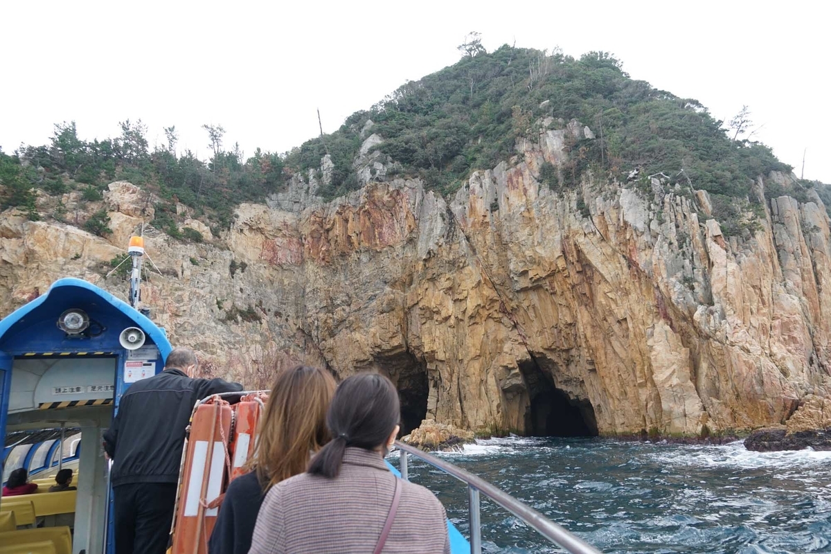 青海島一周では洞門をくぐり抜けたりもするらしいのだが、12月の日本海なので、今日は短縮版の「観音洞」で折り返してくるコースだった。