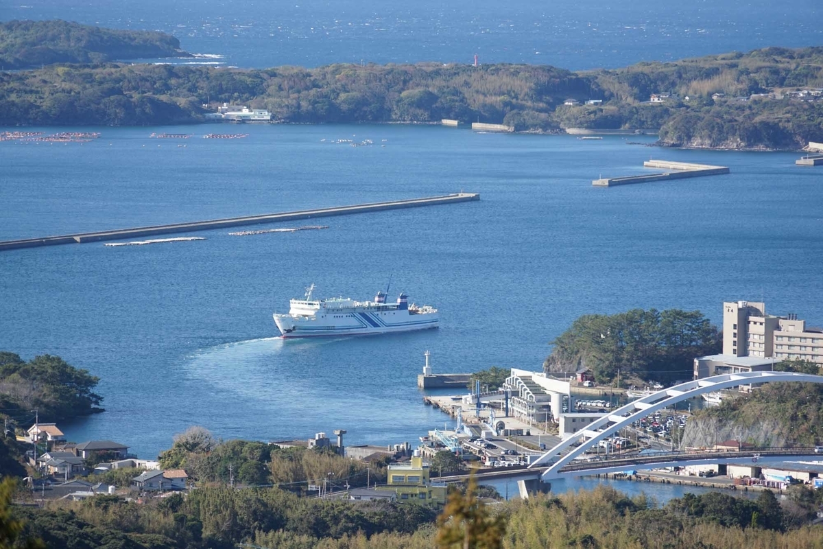 郷ノ浦港。たぶんさっき乗ってきたフェリーが対馬へ行くところかな。