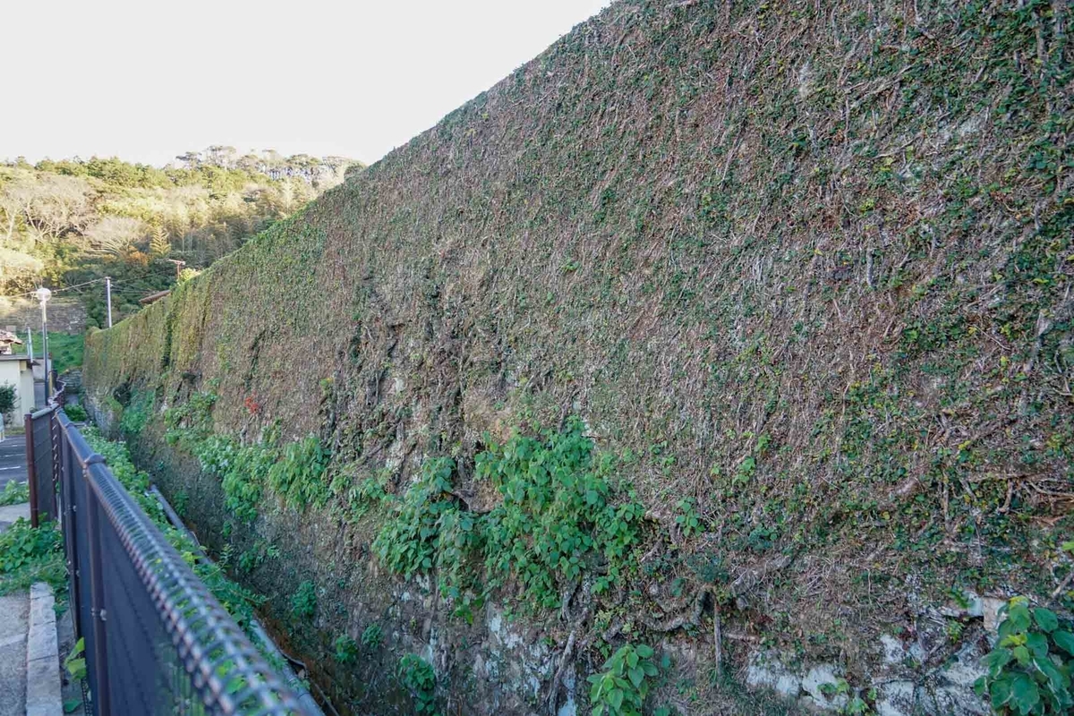 勝本にある、日本の鯨王といわれた土肥家の屋敷跡。巨大な石塀がかろうじて残っている。