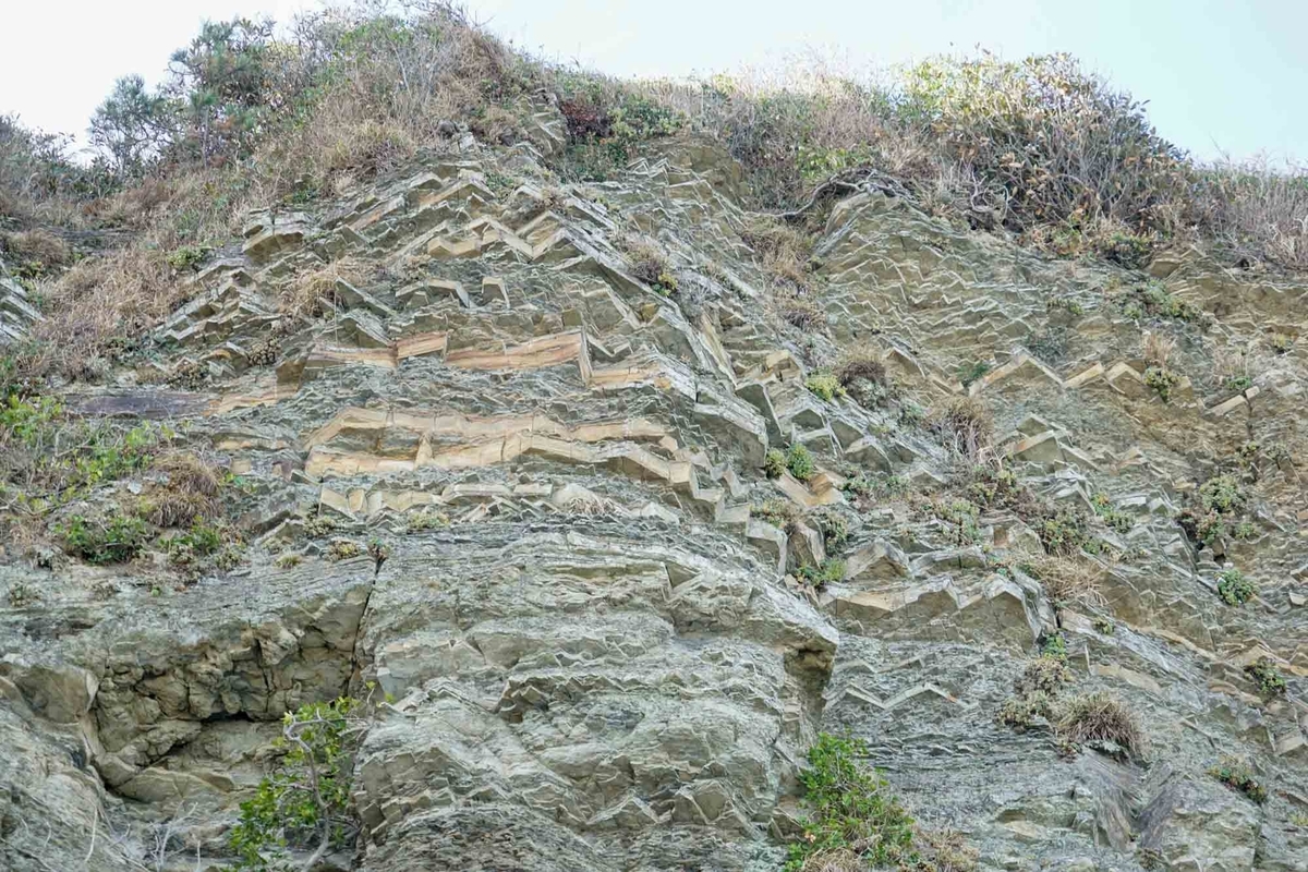 板を重ねたような形になっている、壱岐の土台となってる地層。