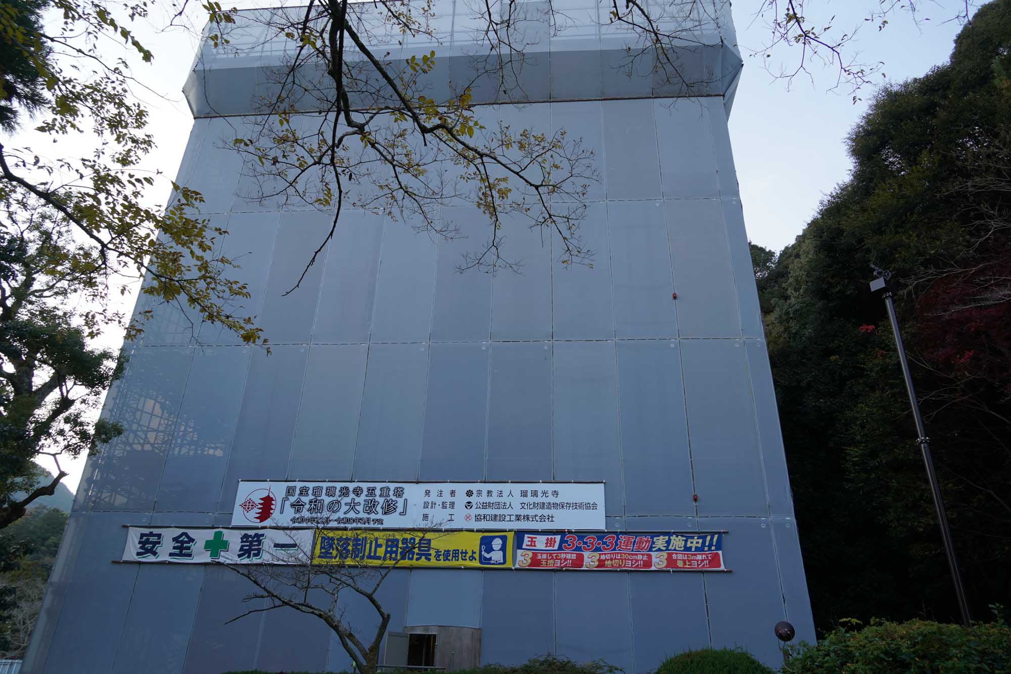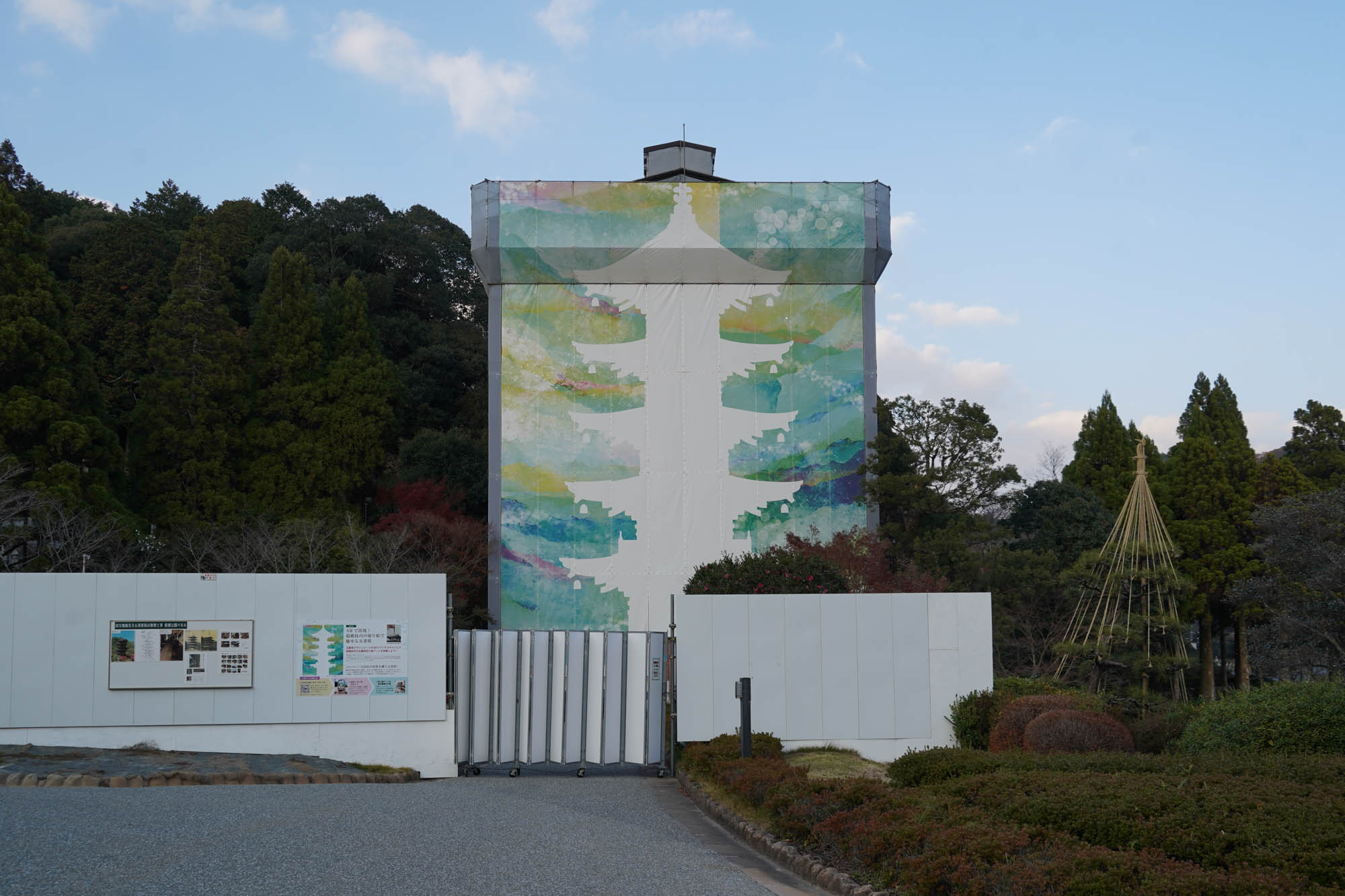 新山口駅での解散前に、瑠璃光寺五重塔のラッピングを観に行く。